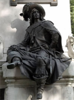Жизнь же самого генерала Тома-Александра Дюма лишь немногим, наверное, уступает похождениям мушкетёров. Поступив в 1776 г. в драгунский полк простым солдатом, он храбро сражался в рядах республиканской армии, за что и был позже произведён в дивизионные генералы. Затем, под началом Бонапарта, последовало участие в итальянской кампании, потом Египет, где Дюма уже в должности командующего кавалерией. Пригрозив расстрелом, Бонапарт срочно выслал строптивого генерала обратно на родину. Но добраться Дюма сумел лишь до Италии, там угодил в плен и более двух лет провёл в тюрьме в Бриндизи, где едва не был отравлен. И только в 1801 году, в момент перемирия между Францией и Неаполитанским королевством, опальный генерал обрёл, наконец, свободу. Впрочем, жить ему оставалось недолго – будучи уволен из армии, Дюма тяжело переживал немилость Первого консула, и умер в 1806 году. Прославленный французский романист, неунывающий жизнелюб Александр Дюма скончался в 1870 году, а на площади Мальзерб, неподалёку от которой он жил, появился памятник. Он и сегодня там – автор замечательных романов, так украсивших наше советское детство. Писатель в окружении своих персонажей. |